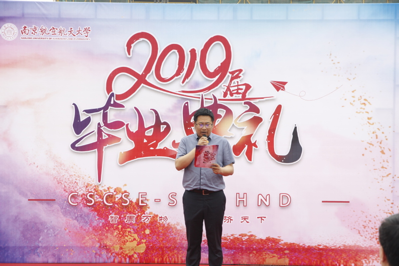 高斌书记讲话,他代表学院向2019届全体毕业生顺利完成学业表示祝贺,同时也对毕业生提出了几点希望:一是要有远大理想;二是要勇担新时代重任;三是要砥砺奋斗,永不言弃。
